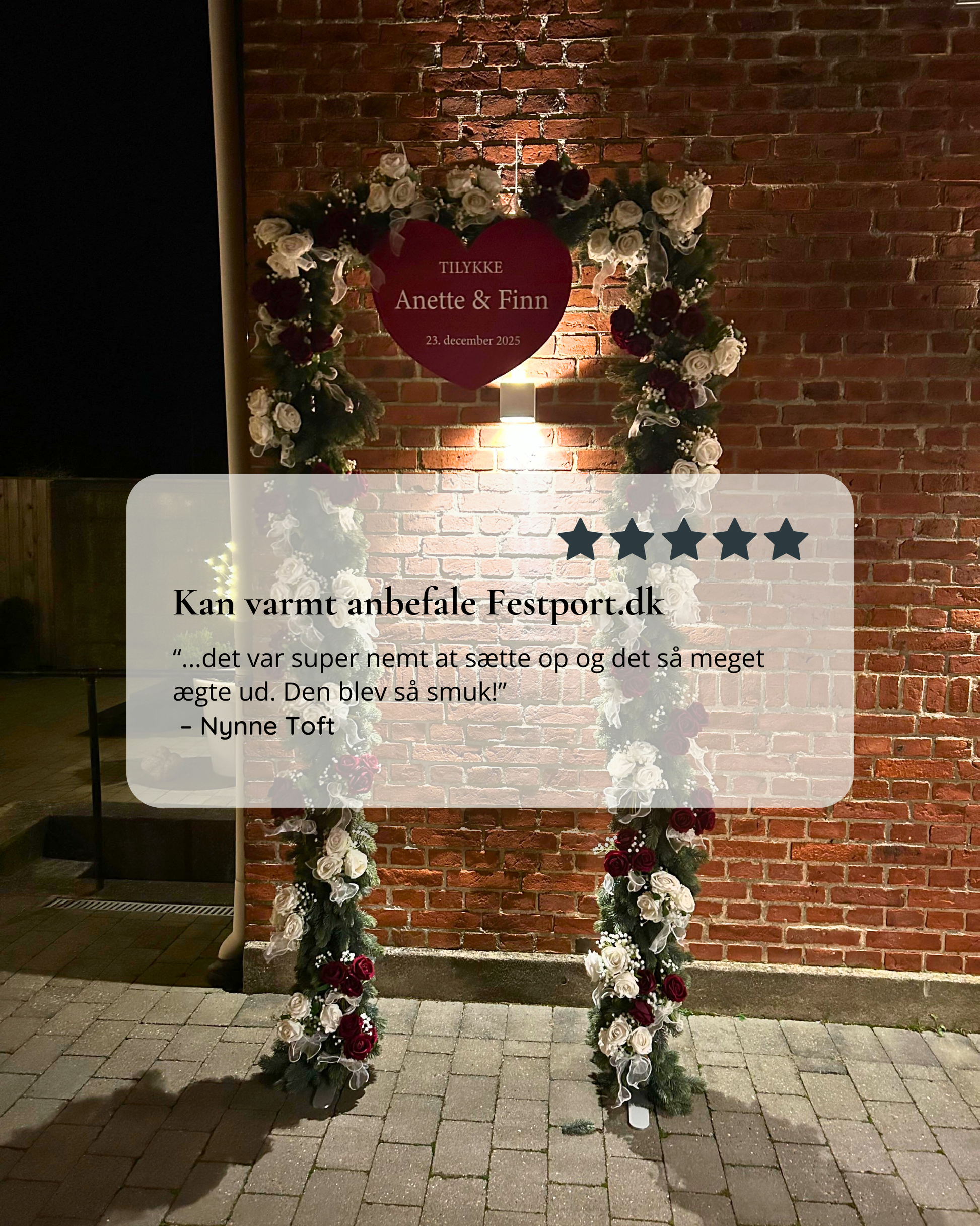 Den er perfekt til sølvbryllup, kobberbryllup, guldbryllup og andre bryllupsjubilæer, hvor familie og venner ønsker at overraske parret med en smuk æresport.