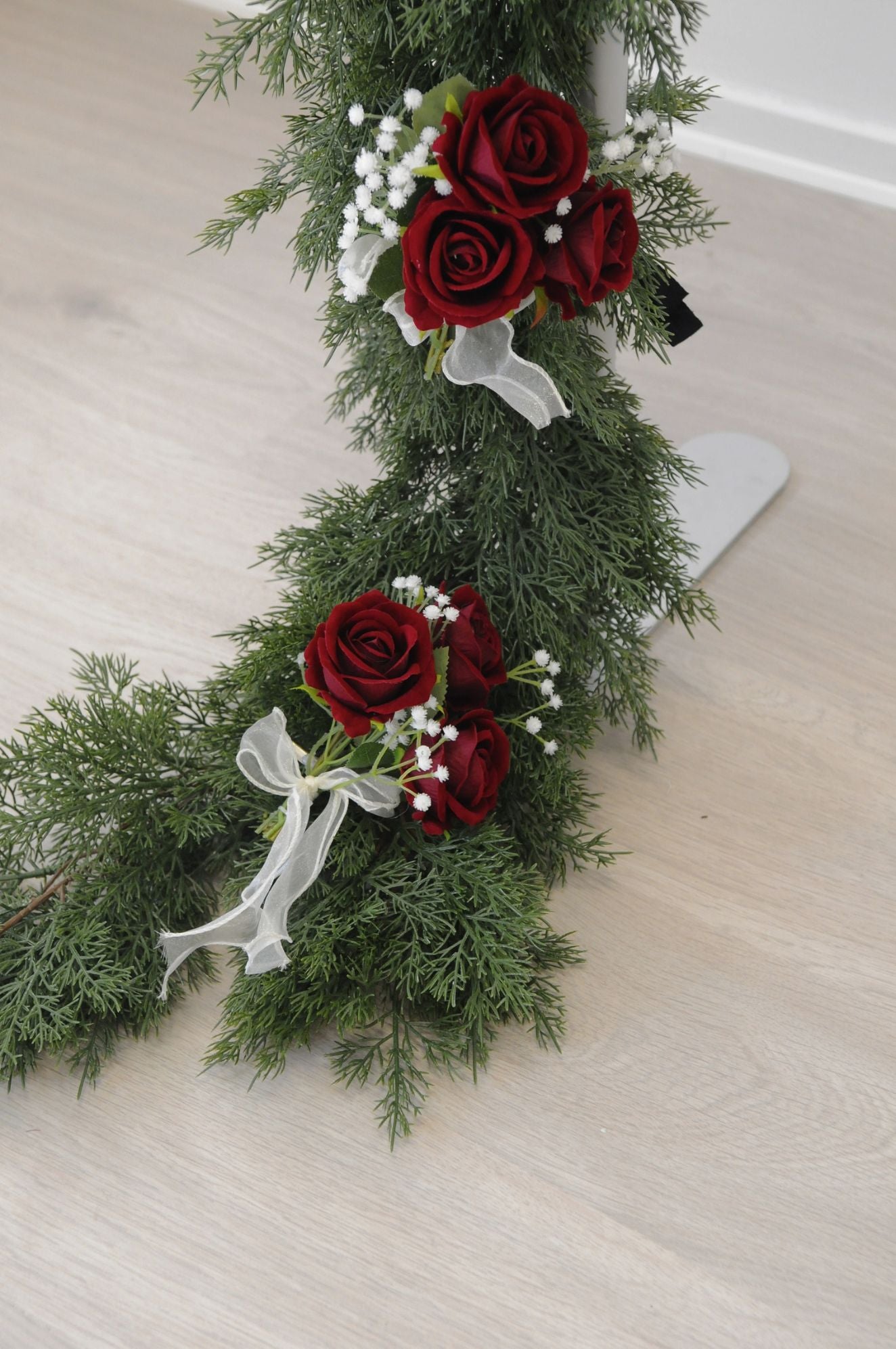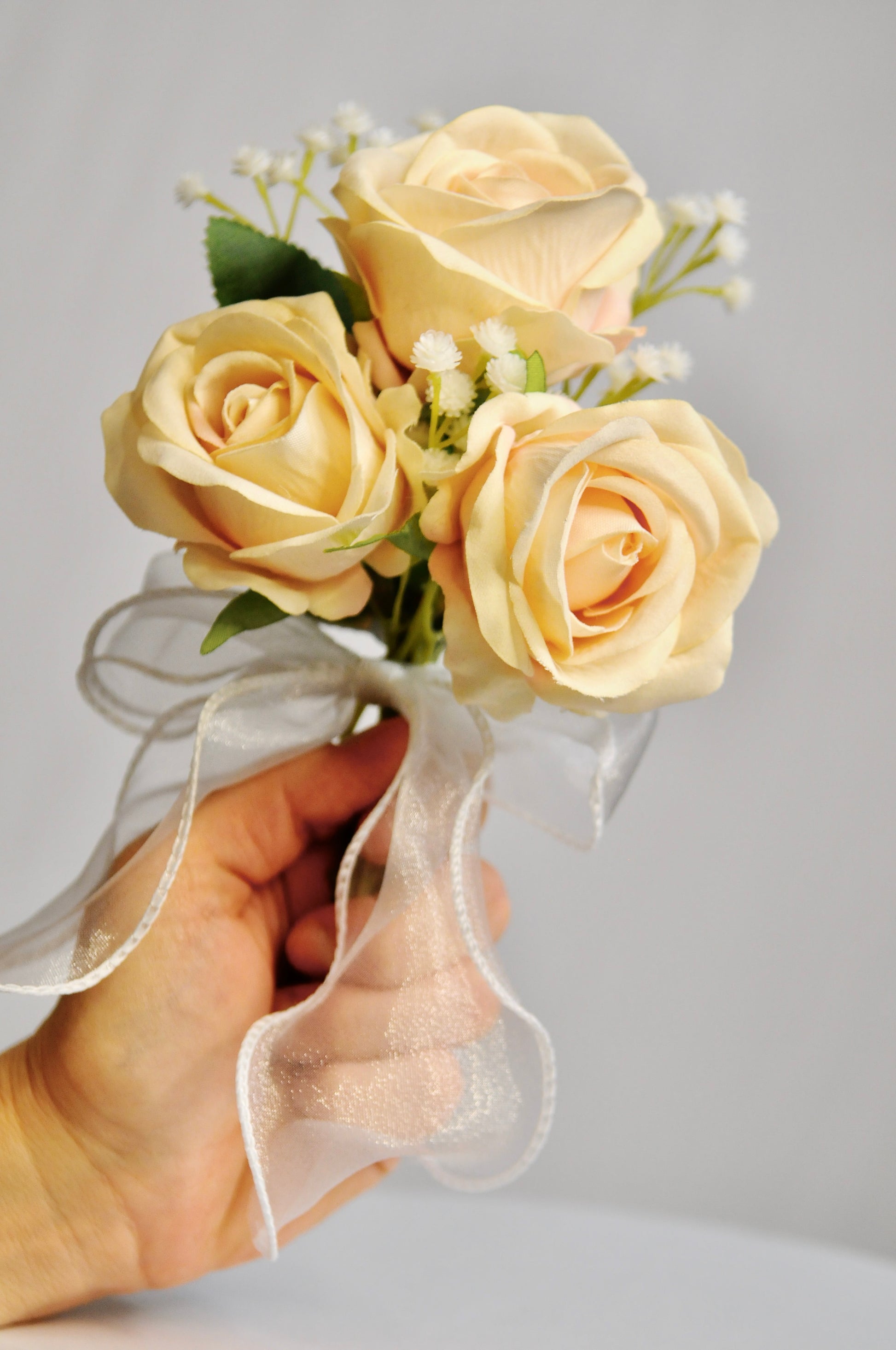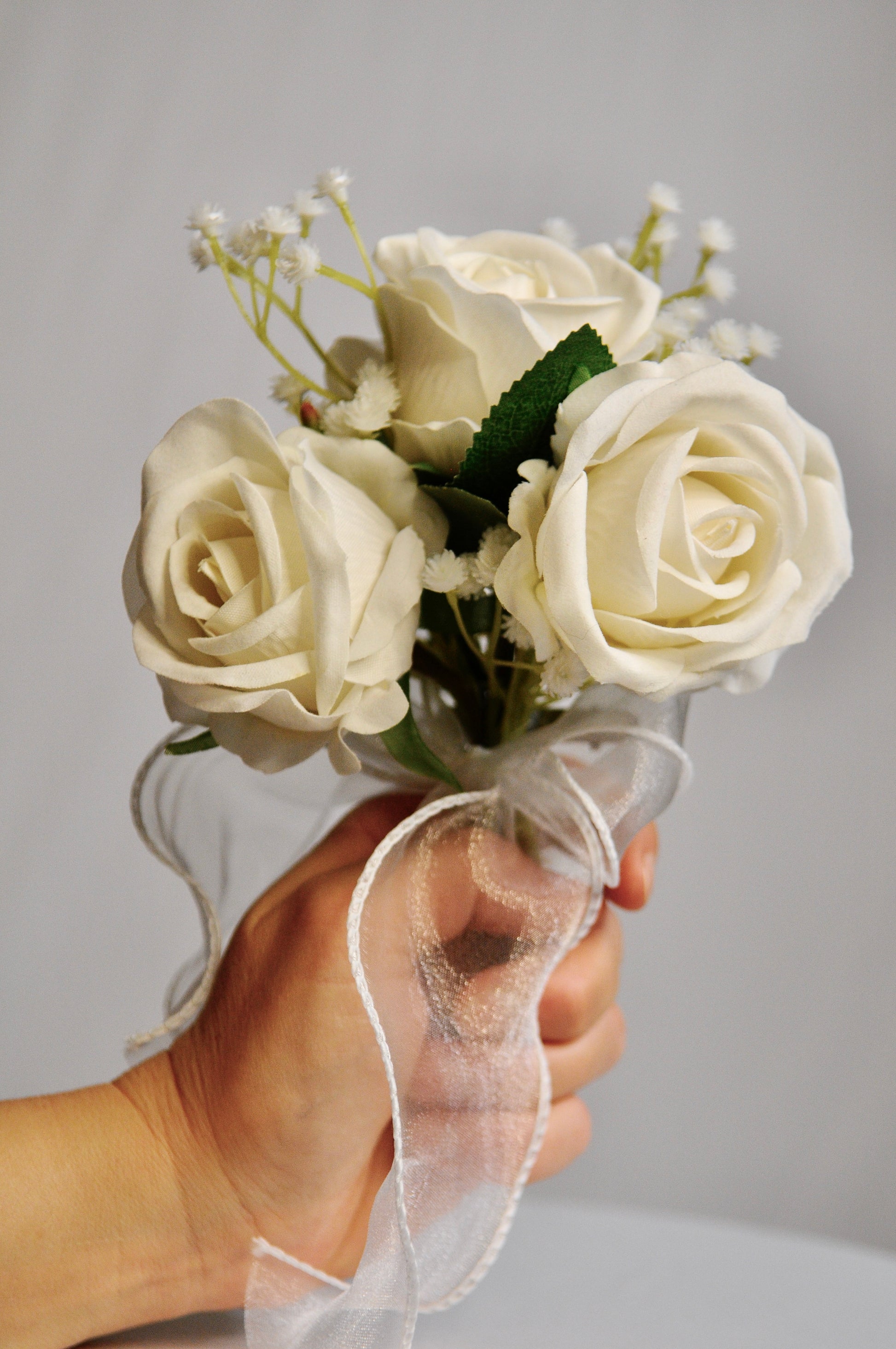 - 24 stk blomster buketter med 3 roser og brudeslør i hver enkelt buket.