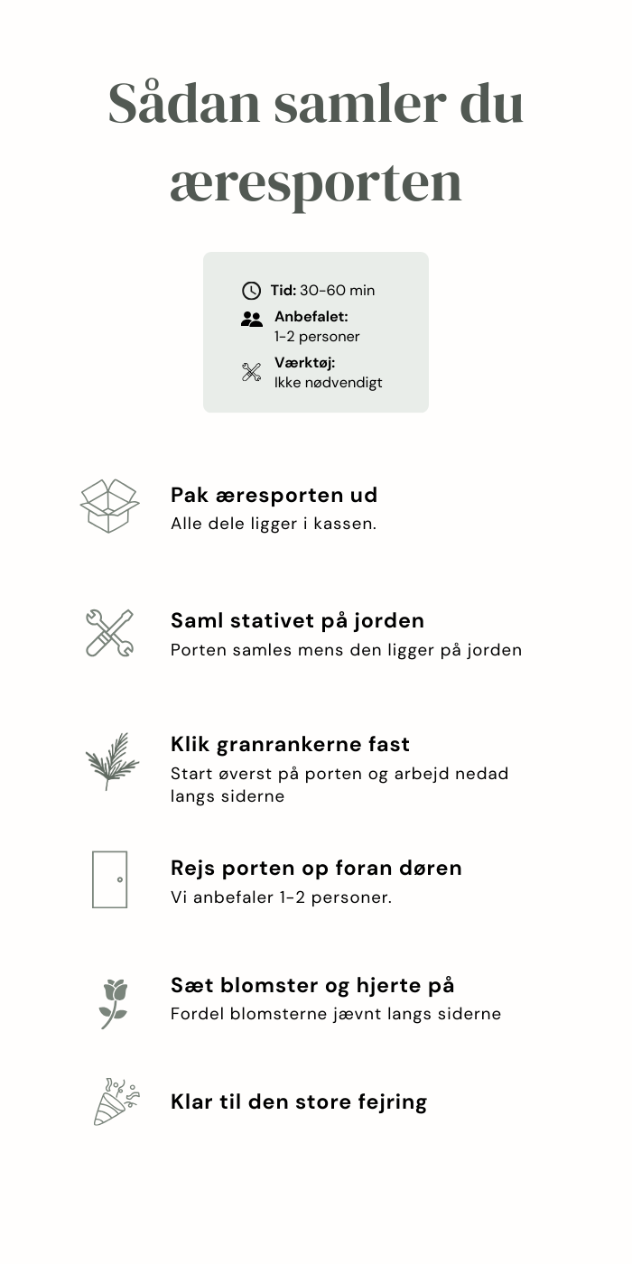 Æresporten sendes normalt 4–5 dage før den planlagte fejring, så der er god tid til levering og opsætning.